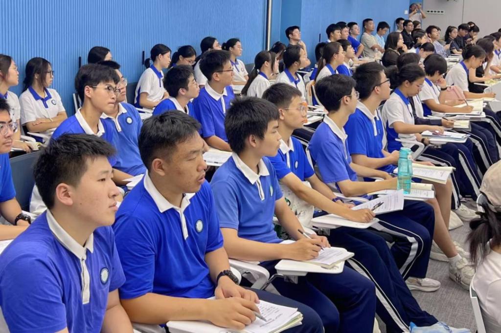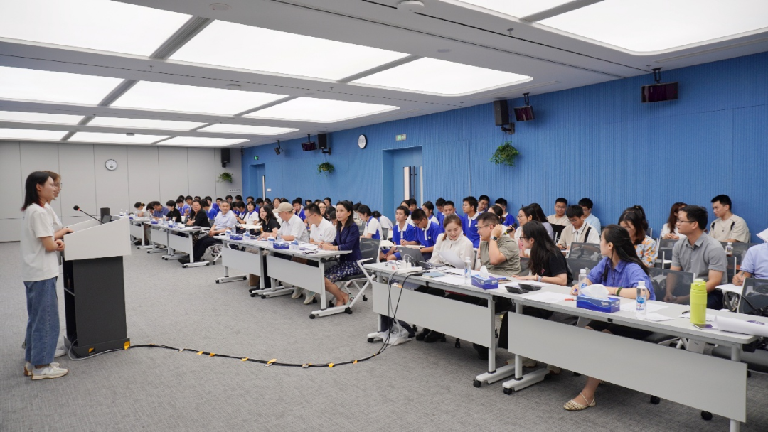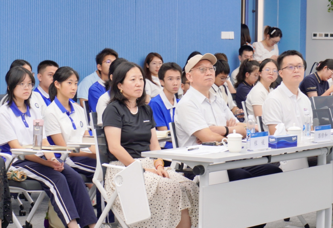 现场有一群特邀嘉宾,他们是来自深圳大学附属实验中学高一的同学们。演讲过程中,同学们全神贯注,认真聆听,不时记录要点。在每轮演讲后的即兴问答环节,评委与观众积极提问,问题既有对科学细节的深入探讨,也有对现实应用的关切思考。评委们专业严谨,从科学价值、表达逻辑、现场表现等维度细致点评,展现了对青年成长的真诚支持。