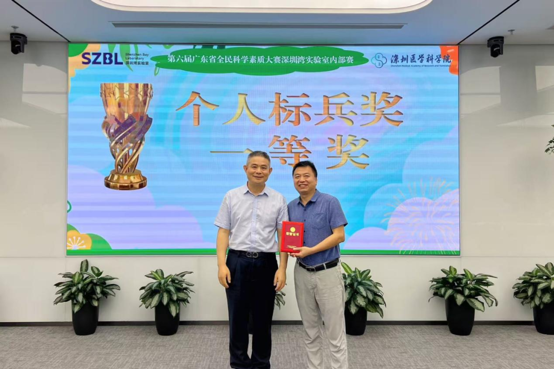 在紧张的比赛间隙,现场还举行了第六届广东省全民科学素质大赛深圳湾实验室内部赛的表彰仪式。实验室多位师生在全市竞赛中脱颖而出,其中1人进入全市前5名,5人进入前50名,充分展现了深圳湾实验室整体的科学素养与学习热情。