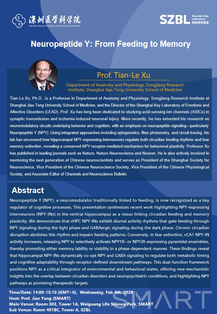 【讲座主题】:Neuropeptide Y: From Feeding to Memory