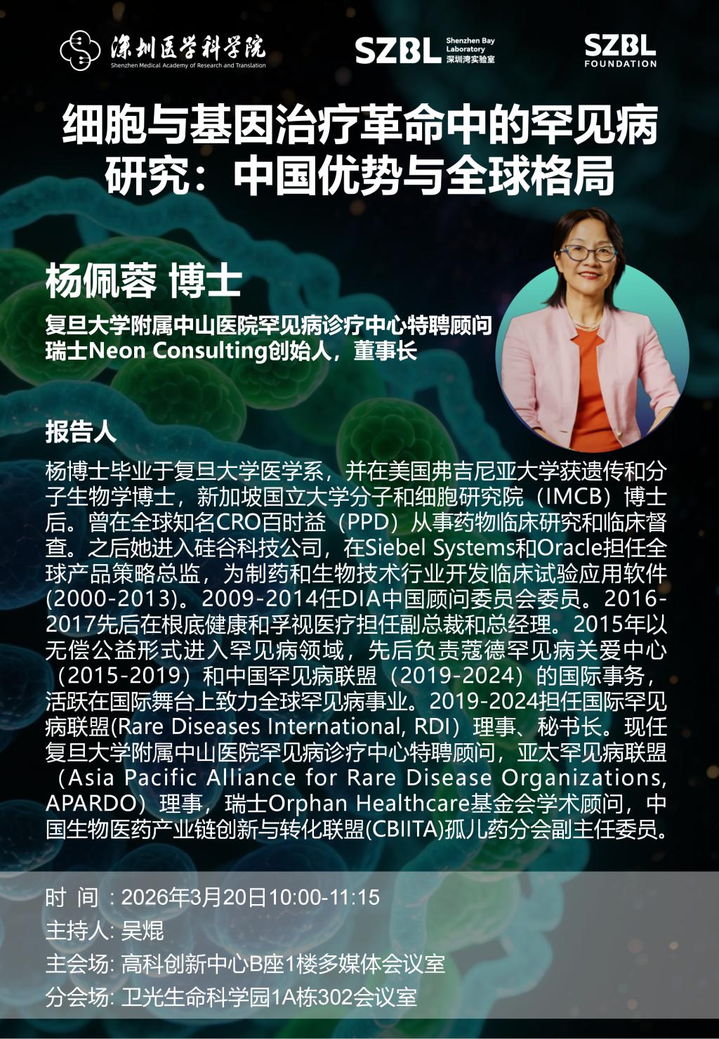 【讲座主题】:细胞与基因治疗革命中的罕见病研究:中国优势与全球格局