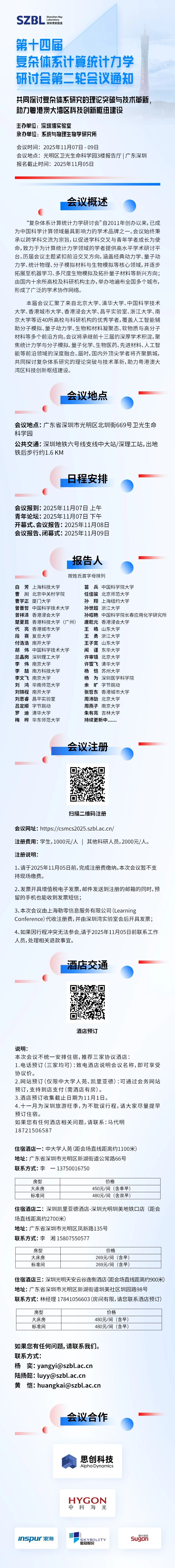 第二轮会议预告丨第十四届复杂体系计算统计力学研讨会