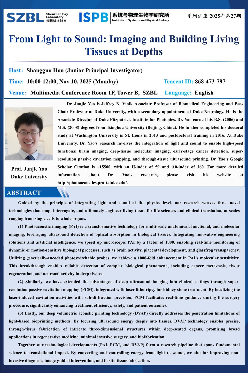 【会议主题】From Light to Sound: Imaging and Building Living Tissues at Depths