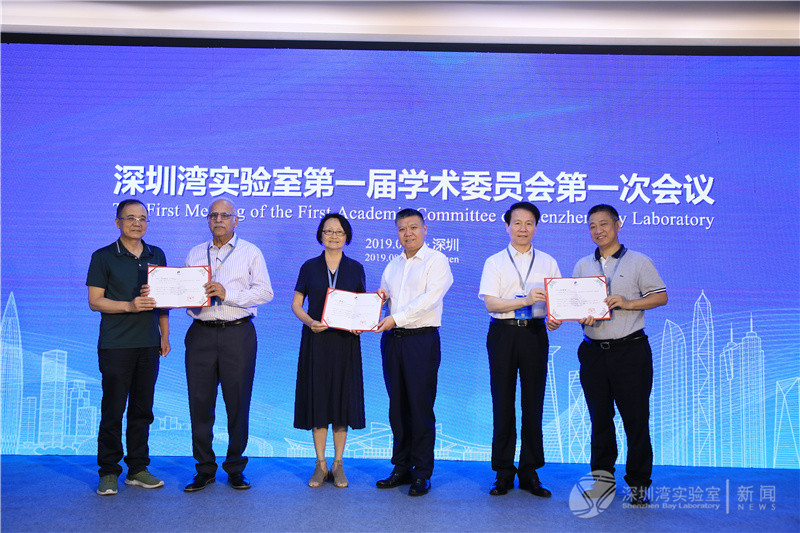 詹启敏随后宣读了深圳湾实验室第一届学术委员会主任委员、副主任委员和委员名单。深圳市副市长王立新、深圳湾实验室主任詹启敏、深圳湾实验室特别顾问林建华为与会委员颁发聘书。经实验室及共建单位推荐,征询专家意见,由理事会审议通过,聘任张明杰为学术委员会主任委员,何川、李蓬、吴虹为副主任委员。成立大会由深圳湾实验室常务副主任吴云东主持。
