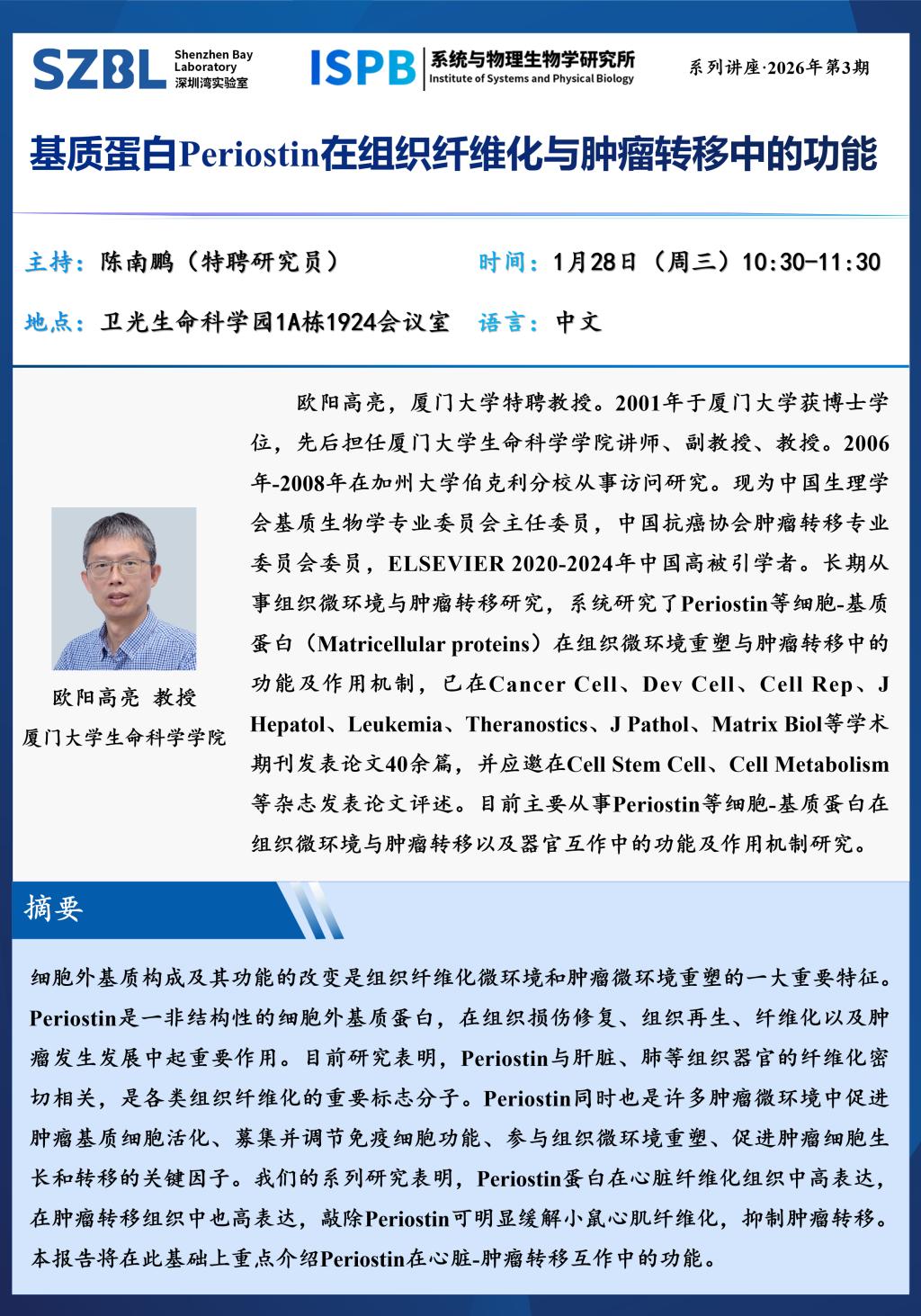 【会议主题】基质蛋白Periostin在组织纤维化与肿瘤转移中的功能