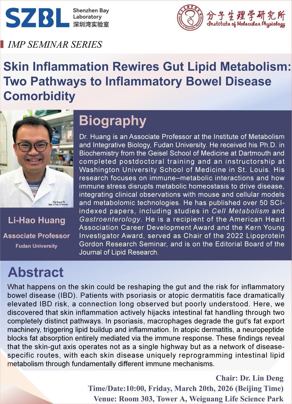 报告主题:Skin Inflammation Rewires Gut Lipid Metabolism: Two Pathways to Inflammatory Bowel Disease Comorbidity