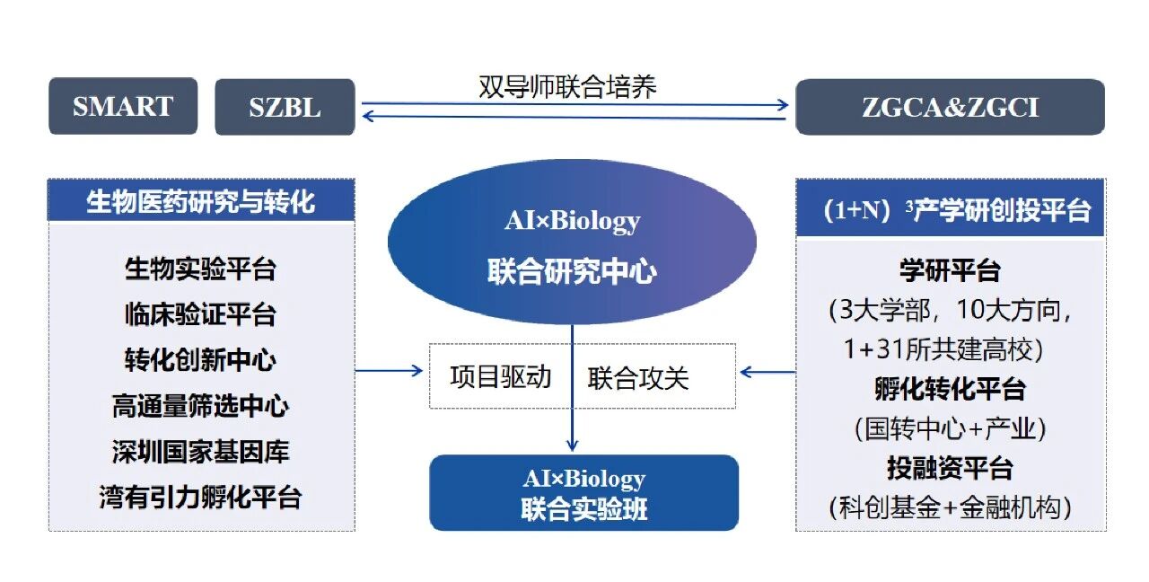 实验班采用联合培养与双导师指导机制,学生将同时享有北京中关村学院领先的算力基础设施与科研平台,以及深圳医学科学院丰富的生物医学实验资源与临床数据支撑,实现在人工智能与生命医学交叉领域的深度融合与系统化训练,培养具备多学科视野、技术融合能力与创新实践素养的复合型高端人才。
