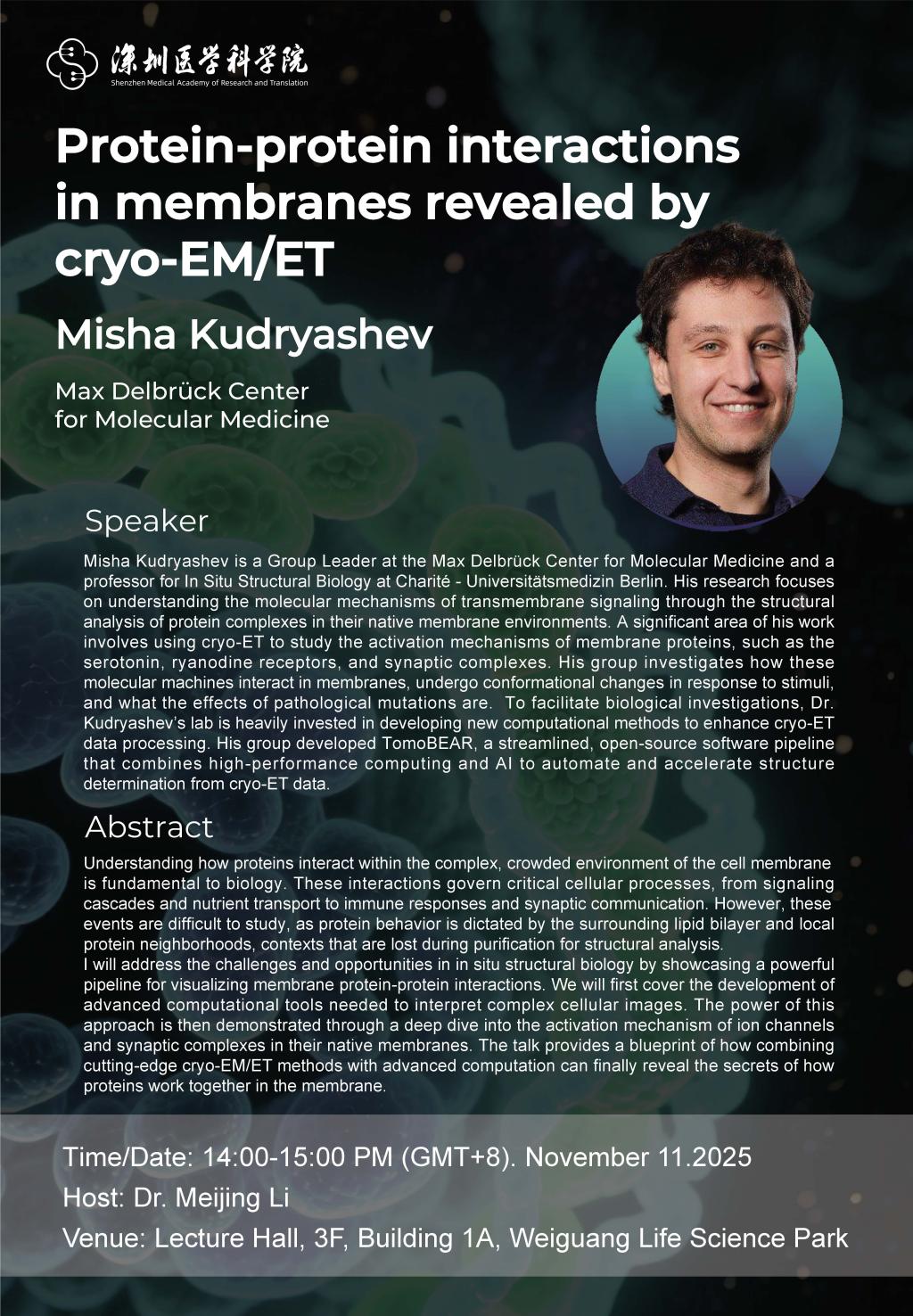 【讲座主题】:Protein-protein interactions in membranes revealed by cryo-EM/ET