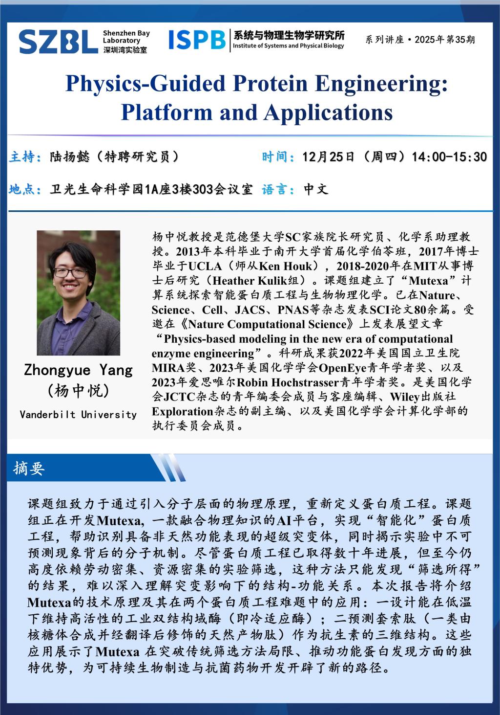 【会议主题】Physics-Guided Protein Engineering:Platform and Applications
