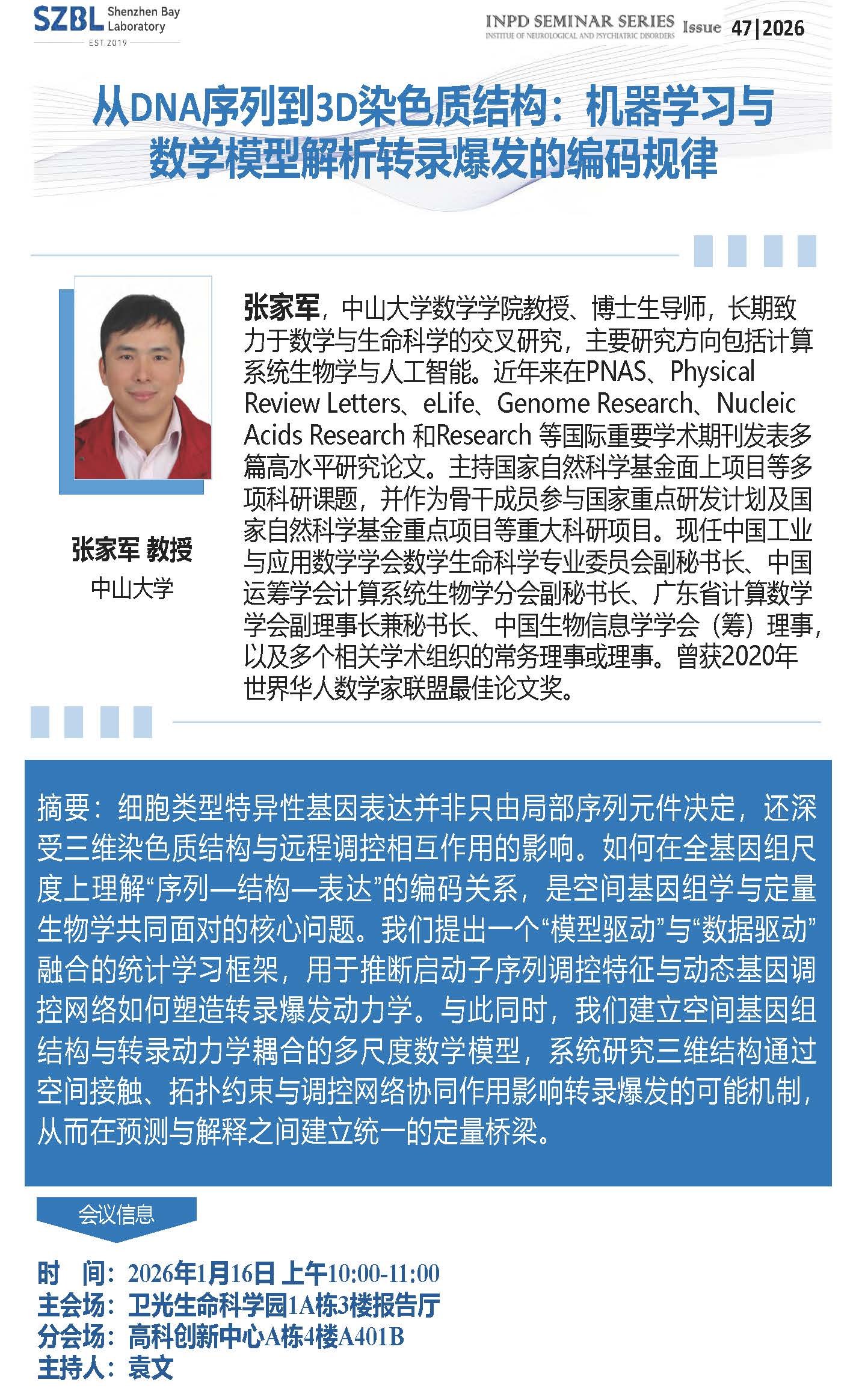 【主 题】:从DNA序列到3D染色质结构:机器学习与数学模型解析转录爆发的编码规律