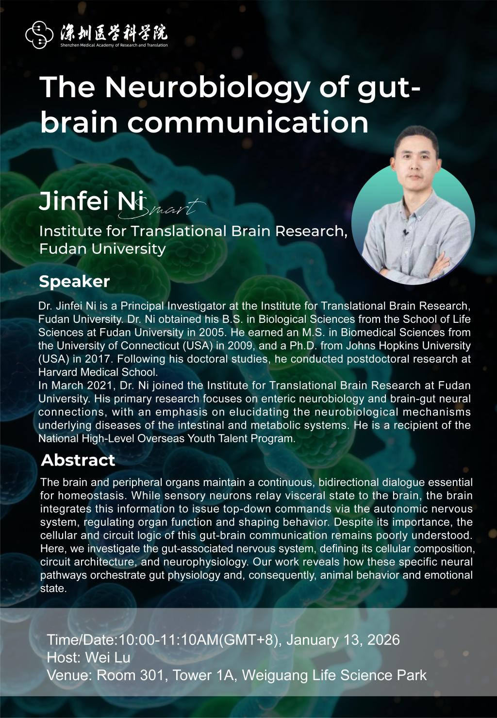 【讲座主题】:The Neurobiology of gut-brain communication