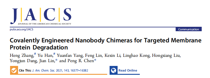这就是后来发表于《美国化学会志》(JACS)的“GlueTAC”技术。他们创新性地利用共价抗体作为“弹头”,确保精准、牢固地锚定在靶标膜蛋白上,再巧妙地使用转肽酶介导定点偶联技术连接上化学穿膜肽,从而将细胞表面的疾病相关关键膜蛋白高效拖入溶酶体进行销毁。这项工作不仅为膜蛋白功能研究提供了一个通用的新工具,更首次充分展示了共价抗体技术在靶向蛋白降解领域的巨大潜力与独特优势。