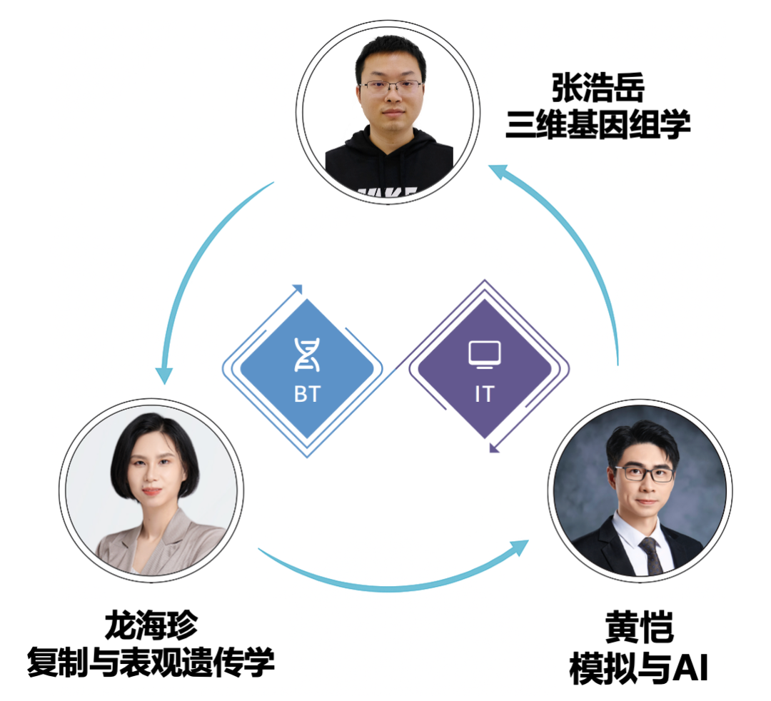 “评委们很看重不同学科之间的交叉合作,采用‘BT+IT’合作的模式,是团队能够胜出的关键所在。”张浩岳表示,他和龙海珍分别从染色质结构和表观遗传学角度解析DNA复制与染色质动态折叠之间的相互调控关系,黄恺则通过计算生物学手段整合多尺度数据,提供理论预测与机制验证。