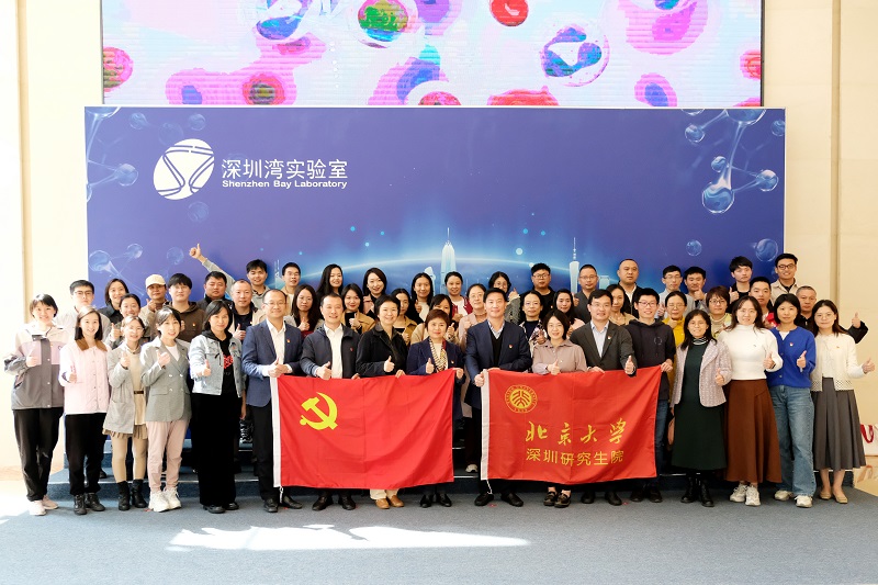 为深入学习贯彻习近平总书记近期重要讲话精神,以新气象新作为推动党建+科研双融双促取得新成效,1月4日,北大深研院与深圳湾实验室共同开展“联学共建促发展,携手奋进新征程”主题党日活动。北大深研院党委副书记、工会主席邹月娴,党委副书记、纪委书记戚国伟,深圳湾实验室副主任涂欢,副主任、人事部部长张欣豪,党委副书记、工会主席吴峰,以及北大深研院机关支部、化生支部、深圳湾实验室综合部和化生所支部党员、PI代表、行政人员等50余人参加活动。