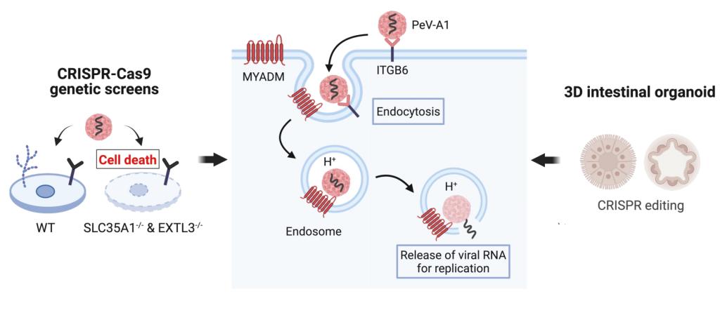 2.Qiao, W., Richards, C. M., Kim, Y., Zengel, J. R., Ding, S., Greenberg, H. B., & Carette, J. E. (2024). MYADM binds human parechovirus 1 and is essential for viral entry. Nature communications, 15(1), 3469. https://doi.org/10.1038/s41467-024-47825-0