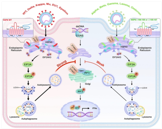 4.揭示了非结构蛋白NSP6在SARS-CoV-2避免宿主抗病毒免疫方面的重要作用,主要机制是NSP6通过触发内质网应激诱导的自噬作用来降解STING1。Autophagy, 2023.